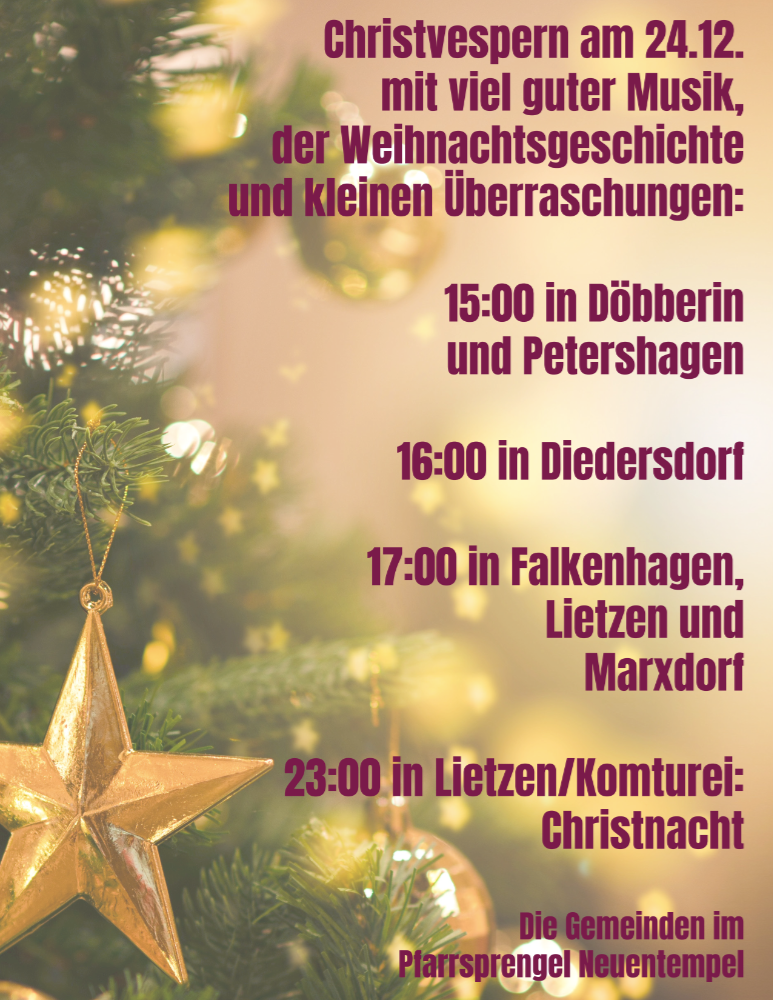 … gehören zur Evangelischen Kirche in Berlin-Brandenburg und liegen im EKKOS – Evangelischer Kirchenkreis an Oder und Spree auf dem Gebiet des Lebuser Landes westlich der Kreisstadt Seelow. Zu ihnen gehören die Dörfer Lietzen und Marxdorf und Neuentempel, Diedersdorf, Görlsdorf, Alt Rosenthal und Worin.