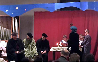 Die Rollen wurden verteilt, viele wollten mitmachen. So hatten wir dann 4 Könige, 5 Hirten, eine große Schar von kleinen Engeln und viele andere Schauspieler. Wir haben sogar eine neue Mikrofonanlage von unserer Partnergemeinde aus Neukirchen bekommen.