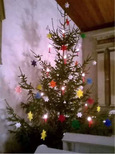 Wir waren froh, dass der Gottesdienst, leider ohne Pfarrer, aber durch Unterstützung von Lektorin Mechthild Kunkel und Ulrike Wüstinger, so gut gelungen war. Stolz waren wir!!! Alle verließen die Kirche in weihnachtlicher Stimmung.