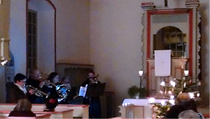In den Umbauszenen hörten wir, sehr schön als Denkpausen eingebaut, Musik von den Flöte und Gitarre spielenden Jugendlichen und Kindern der Gemeinde. In die Vorweihnachtsszene, in der Luther an der Predigt arbeitet, ist die Hirtenszene der Geburtserzählung eingebaut worden, sozusagen als lebendes Bild, zu dem die biblische Geschichte gelesen wird, eben-falls pausierend mit Liedern, die die Gemeinde singt.
