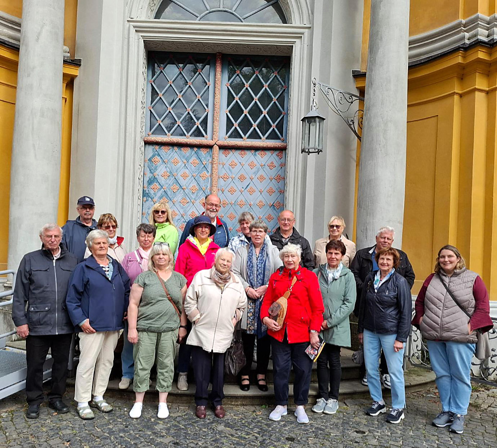 Wie jedes Jahr machten wir vom Nachmittagskreis im September einen Ausflug. Diesmal ging es nach Neuzelle. Treffpunkt war am 16.09.2025 um 10 Uhr an der Kirche in Falkenhagen. Trotz mäßigem Wetter trafen sich 20 Personen, die diesen Tag zusammen verbringen wollten. Mit dem „Fischkutter“ und einigen privaten Autos ging es dann Richtung Neuzelle. Dort angekommen hatten wir noch Zeit für einen kurzen Spaziergang. Um 11.30 Uhr gab es im Hotel Prinz Albrecht unser vorbestelltes Mittagessen. Gut gestärkt machten wir uns dann auf den Weg zum Kloster, das ja nur ein paar Schritte entfernt war.