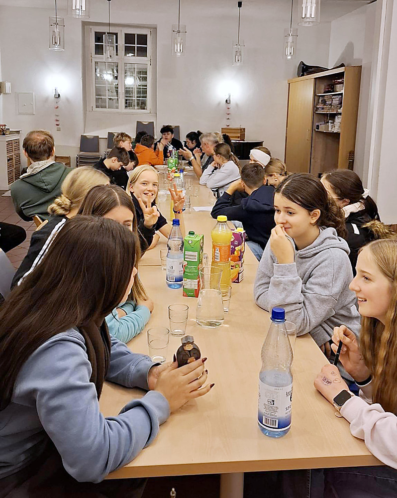 Nach den Herbstferien stimmten wir uns auf das Martinsfest ein. Wir sangen Martinslieder und teilten, wie immer Gebäck, Brot und Getränke als Stärkung. Wir bastelten Martinsgans-Laternen, die in der Kirche auf uns zum Martinsanspiel warteten.